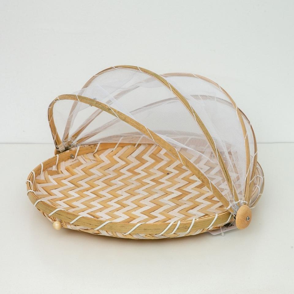 Food Tray Basket With Foldable Net Decorative Bamboo Tent Cover Baskets Keep Flies Out for Outdoor Dining