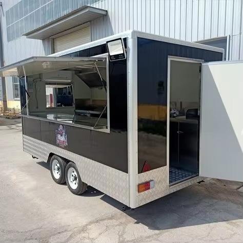 Food Truck Fast Food Mobile Kitchen Pizza Coffee Cart Ice Cream BBQ Rust Resistant 4 Wheel Mobile Food Truck Trailer