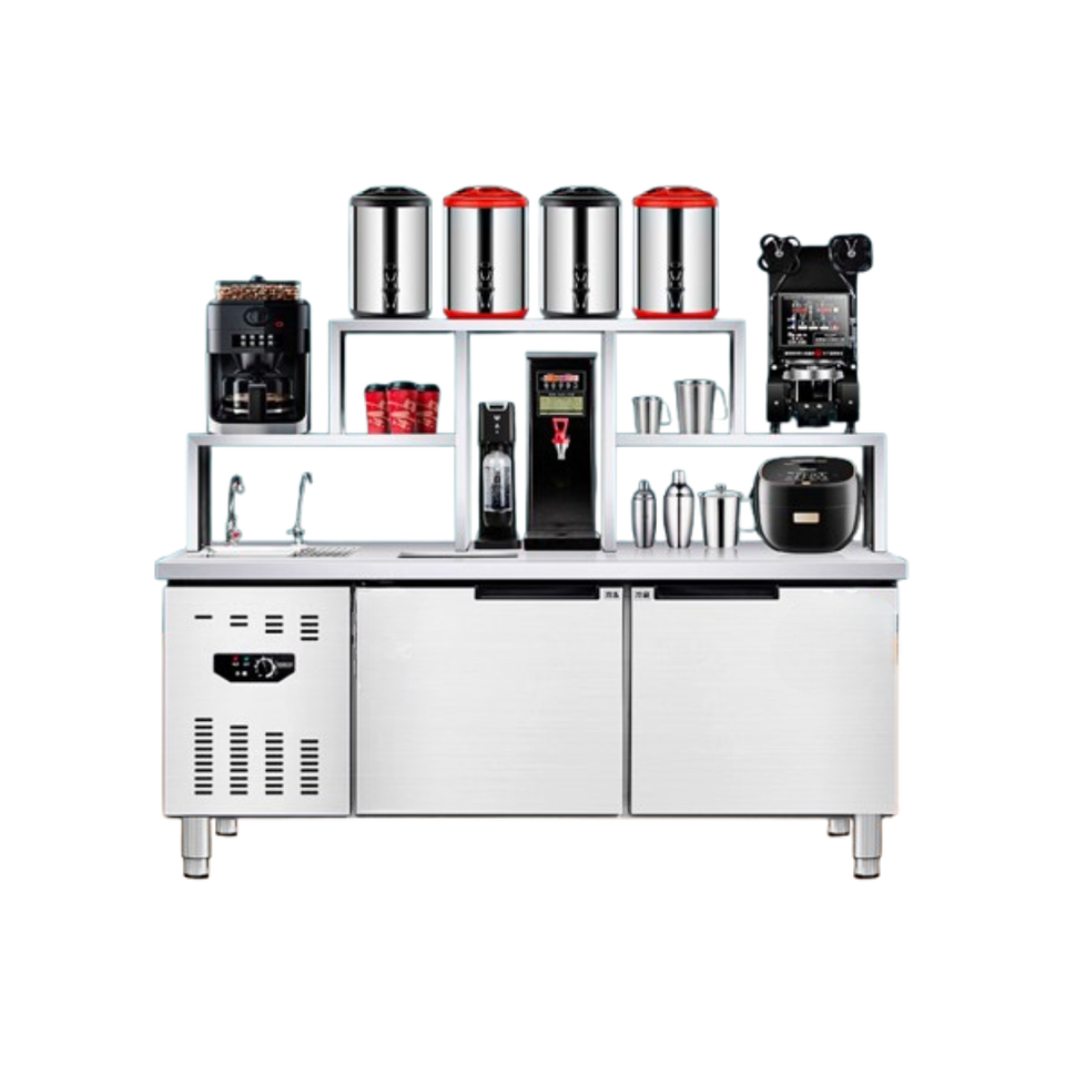 Service 1:Full set bubble tea machines, Ingredients supply, 3D shop setup design