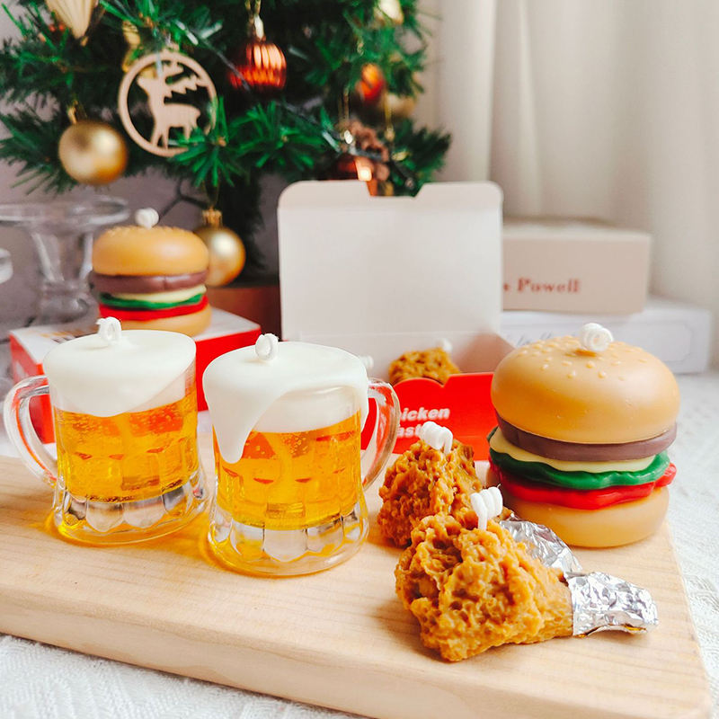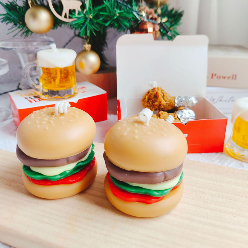 Handmade Food Shaped Soy Wax Scented Decor Candles Cute Creative Hamburger Fried Chicken Beer Party Holiday Gift Easter Xmas