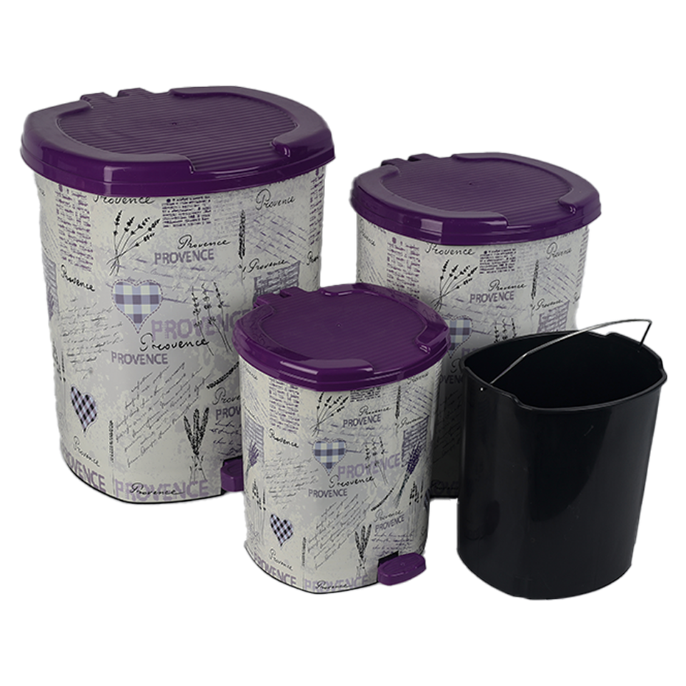 Foot Pedal Patterned Dustbin Set Decorative Plastic Trash Bin Lid Display Box Household Waste Container Eco-Friendly