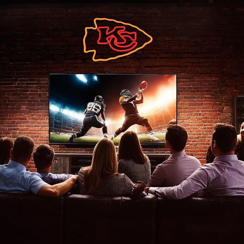Football Rugby Sports Team Neon Sign Chiefs KC Logo LED Light USB Powered Dimmable Wall Decor Home Bedroom Man Cave Bar