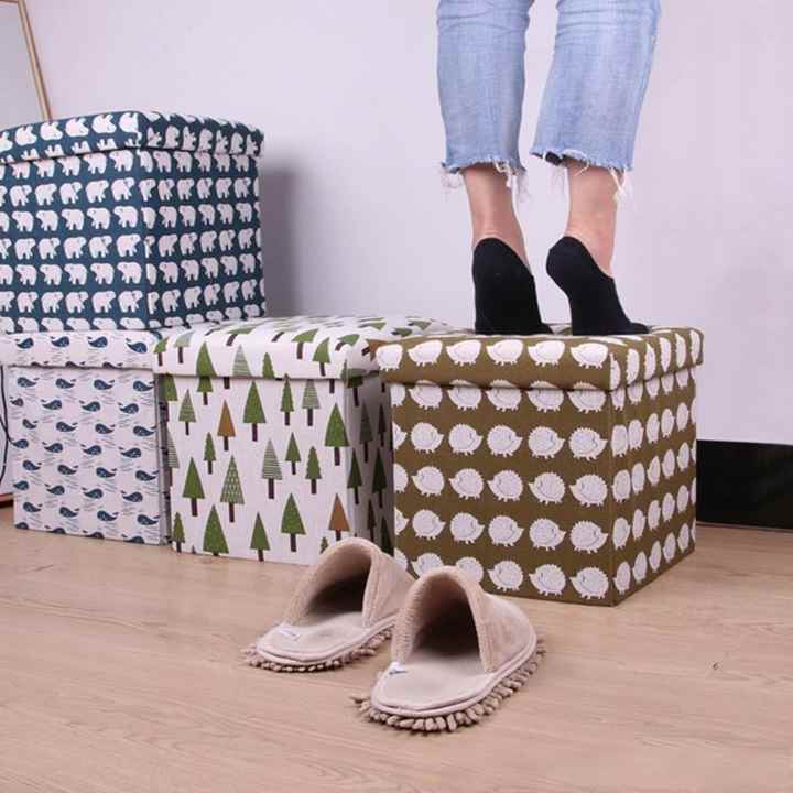 Footrest Ottoman Storage Box Flat Pack Folding Toy Storage Cube Foot Stool Japanese Fabric Bedroom