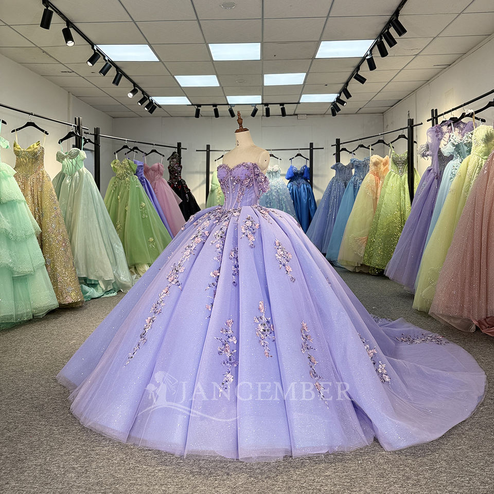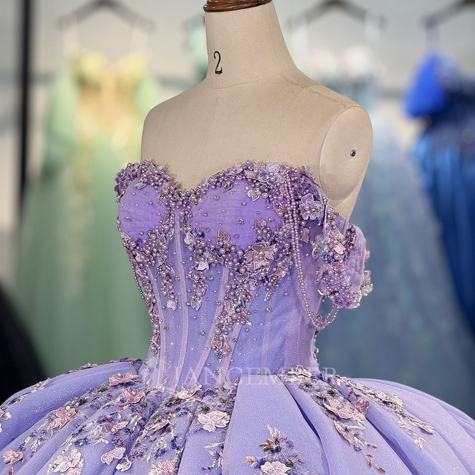 For 1306 Exclusive Lilac Pearls Sweetheart Ball Gown Lace Beading Appliques Party 16 Girls Evening Quinceanera Dress