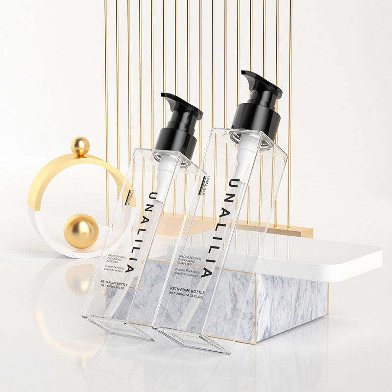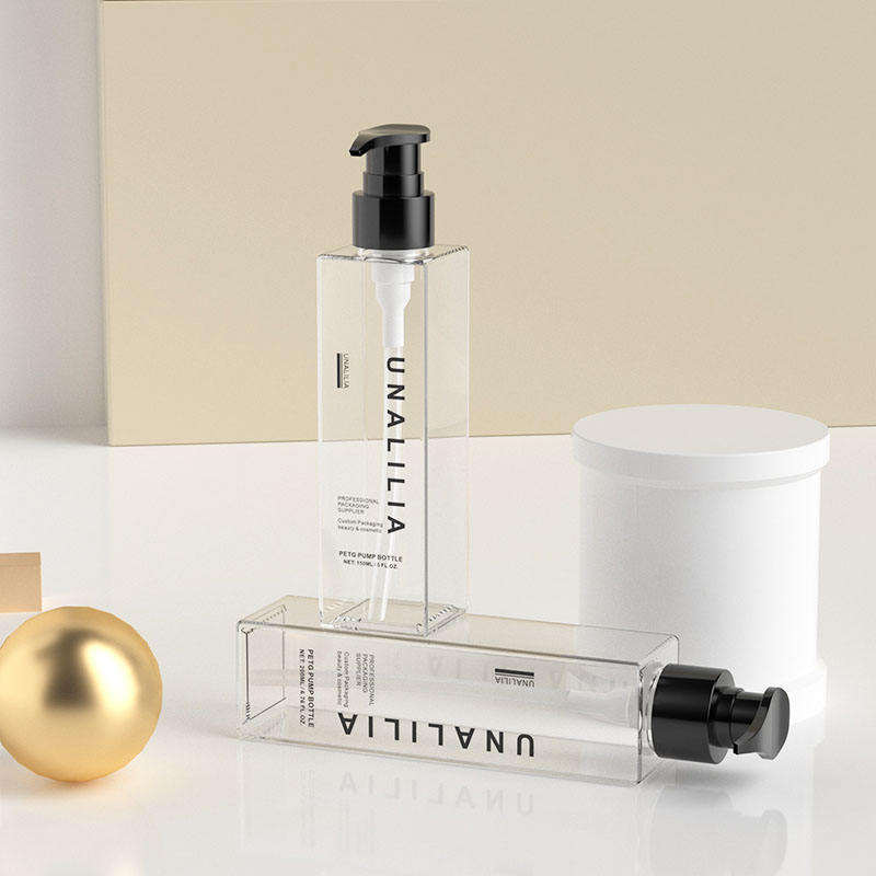 For 150ml 200ml PETG Plastic Square Bottle Pump Sprayer Silk Screen Printed Body Lotion Moisturizer Skin Serums Custom