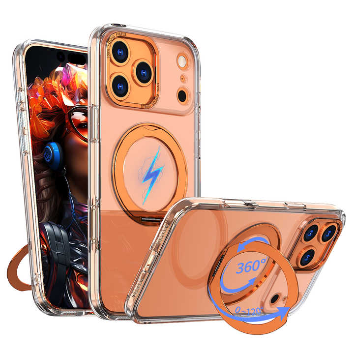 For 17 Pro Max TPU+PC+Metal 360 Rotatable Magnetic Ring Stand Wireless Charging Shockproof Waterproof Armor Design Phone Case