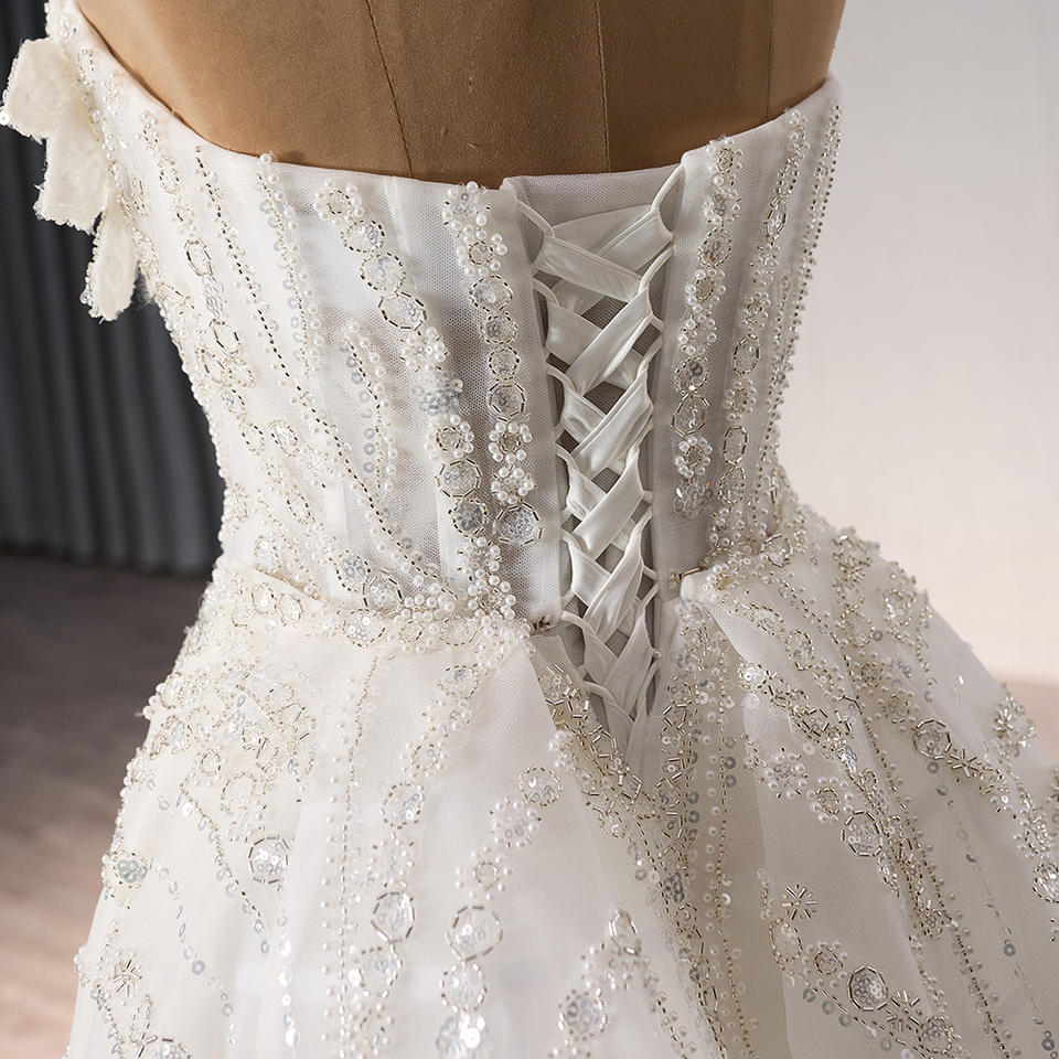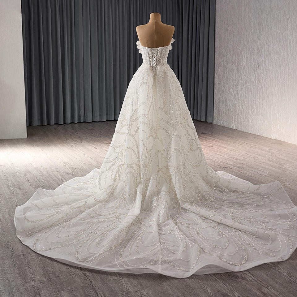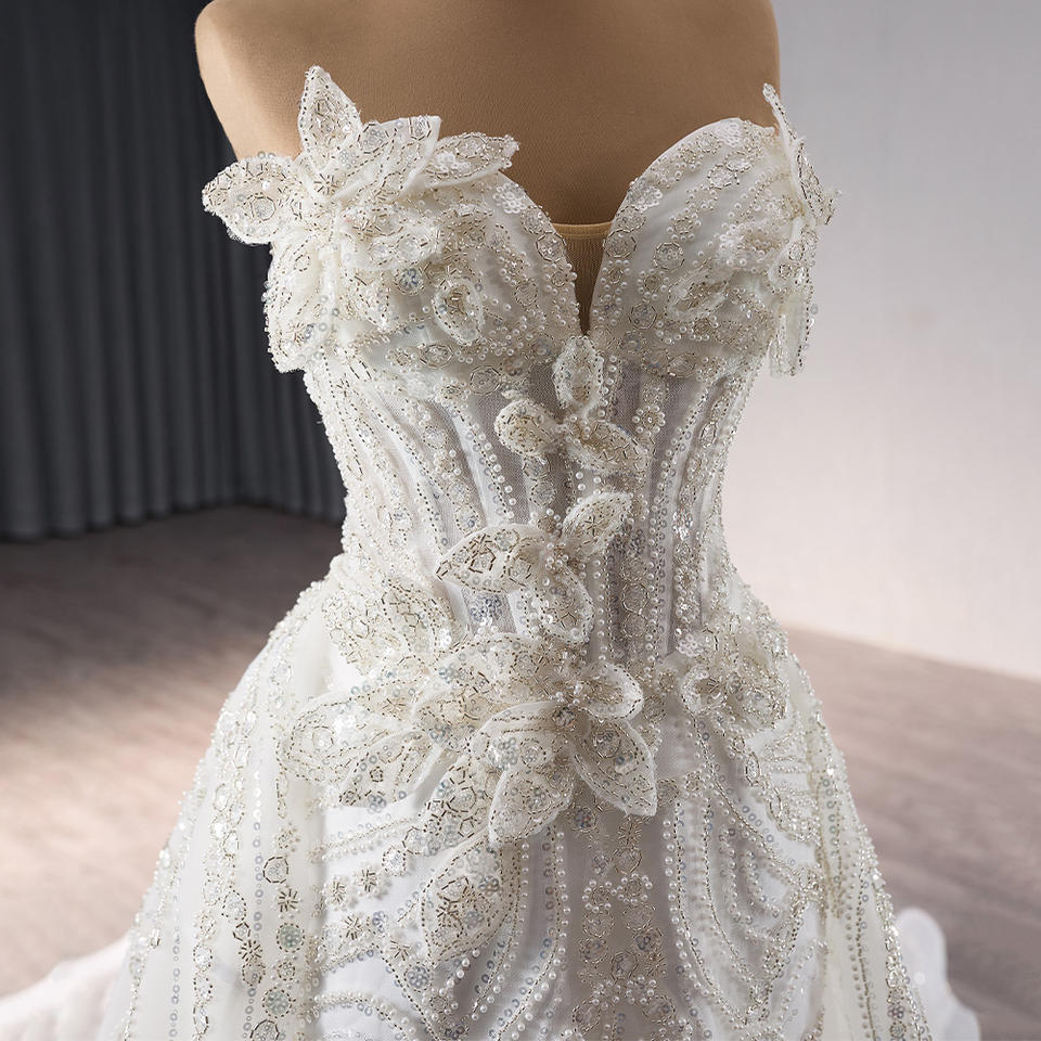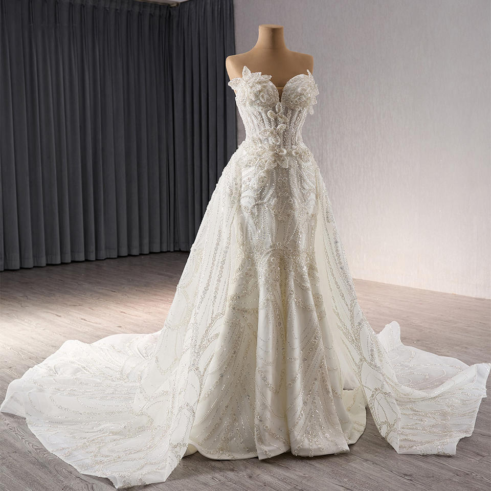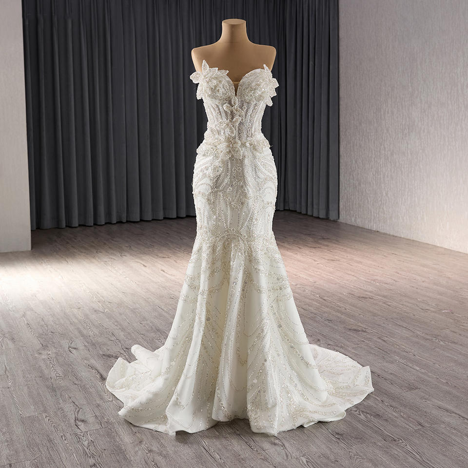 For 241092 Natural Waistline Party Heavy Beaded Sweetheart Mermaid Wedding Gowns Chapel Train Ruffles Pleat Anti-static