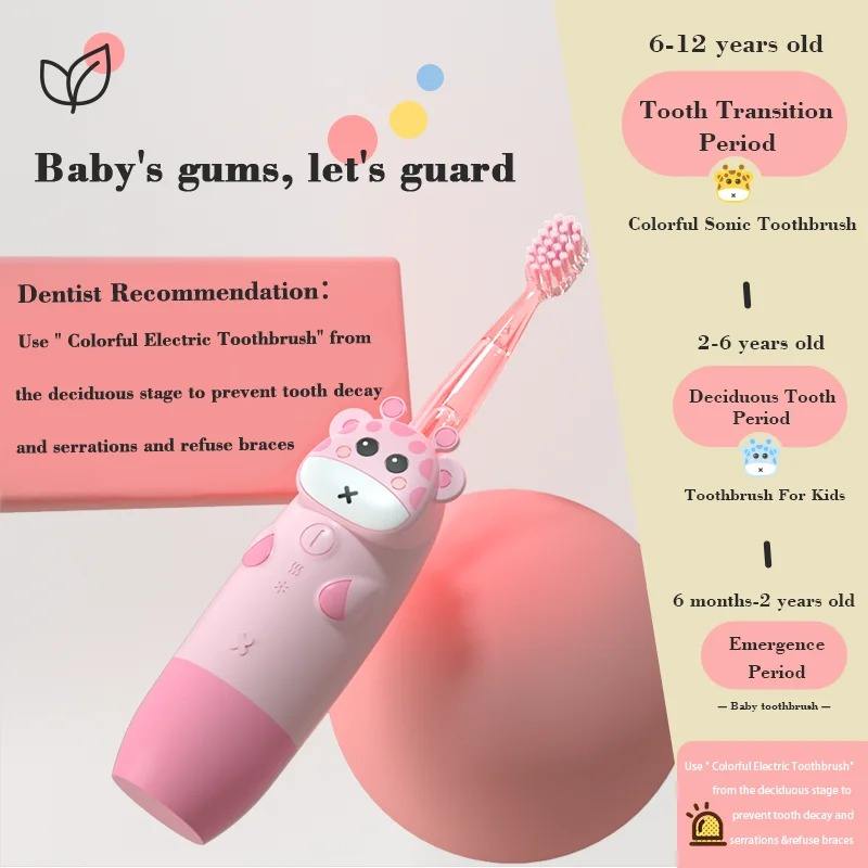 For 3-12 Ages Children's Sonic Electric Toothbrush Battery Colorful LED Sonic Kids Tooth Brush Smart Timer Brush Heads Gift