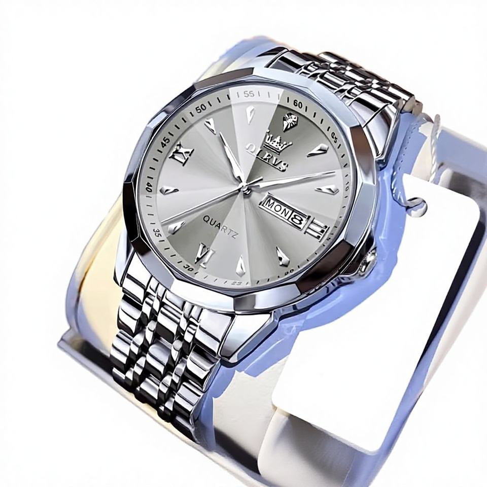 For 9998 Men's Stainless Steel Quartz Luxury Fashion Cartoon Simple Business Watch Waterproof Dual Calendar Luminous