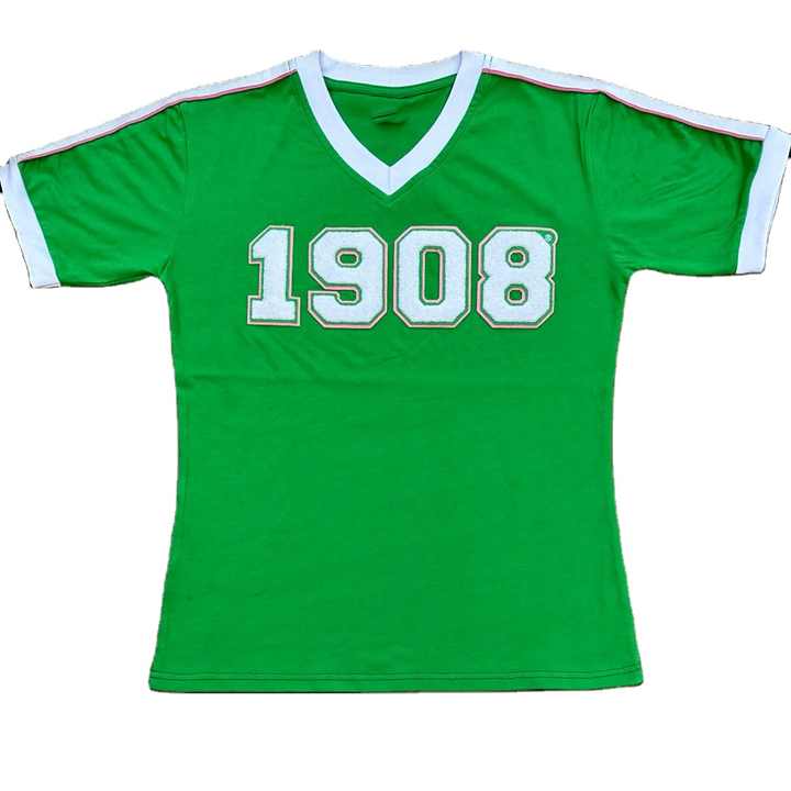 For ALPHA PHI ALPHA T-shirt Greek Ringer with Custom Design Chenille Embroidered logo 100% Cotton Knitted White Green