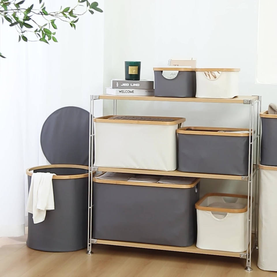 For Amazon Hot Selling Polyester Fabric Bamboo Storage Baskets Laundry Baskets Clothes Laundry Bags High Quality
