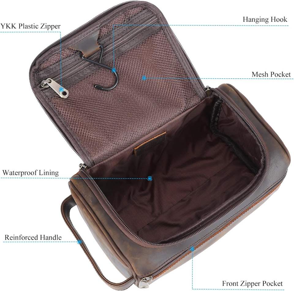 For Bag Vintage Zipper Soft Handle Portable Travel Cosmetic Genuine Leather Handbag with Thread Pattern and Logos