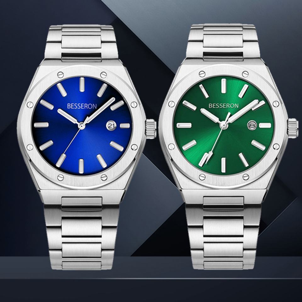 For Besseron Stainless Steel Quartz Watch for Men Factory Custom Logo Luxury Wristwatch Luminous Hands Waterproof Fashion