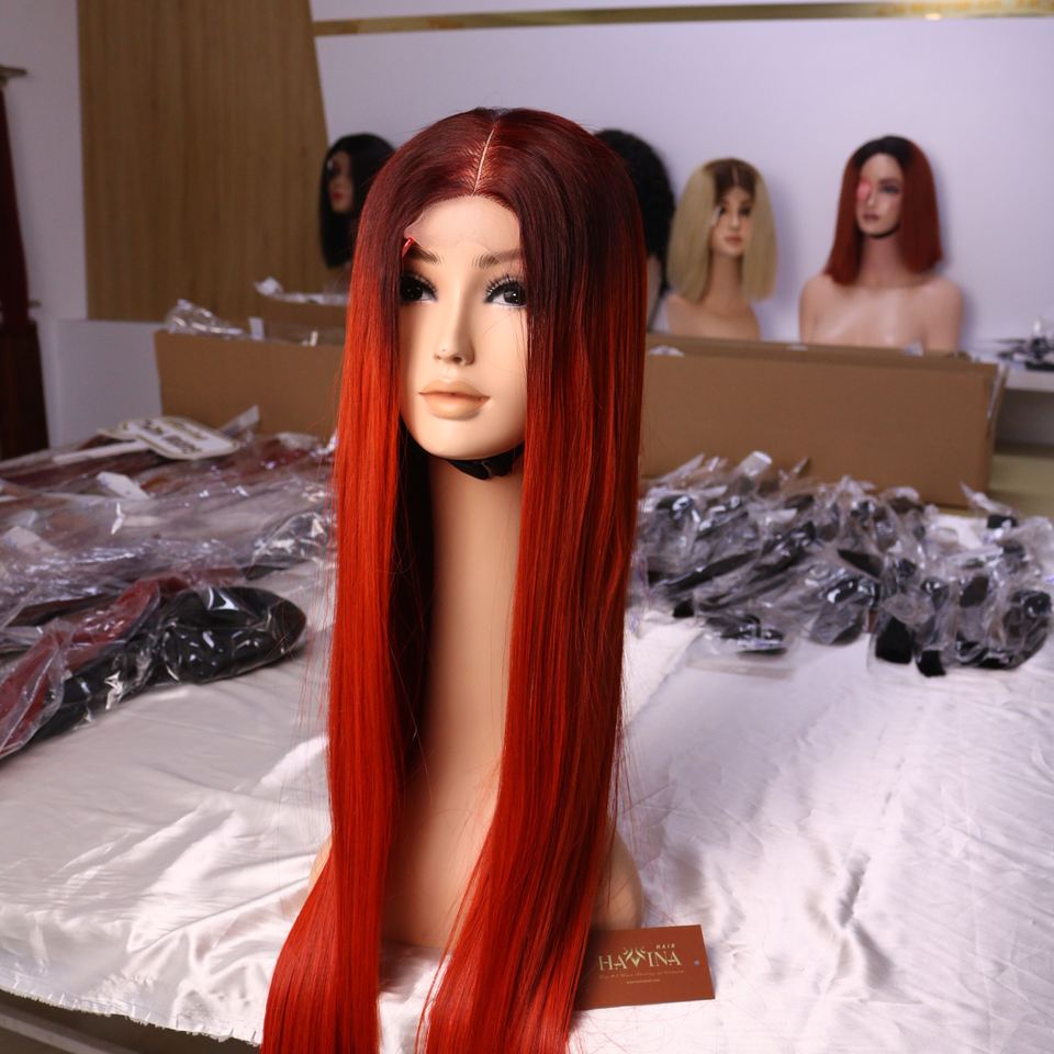 For Black Women Bright Red Color Custom Size Human Hair Wigs HD For Lace Frontal Wigs Long Length Size High Quality