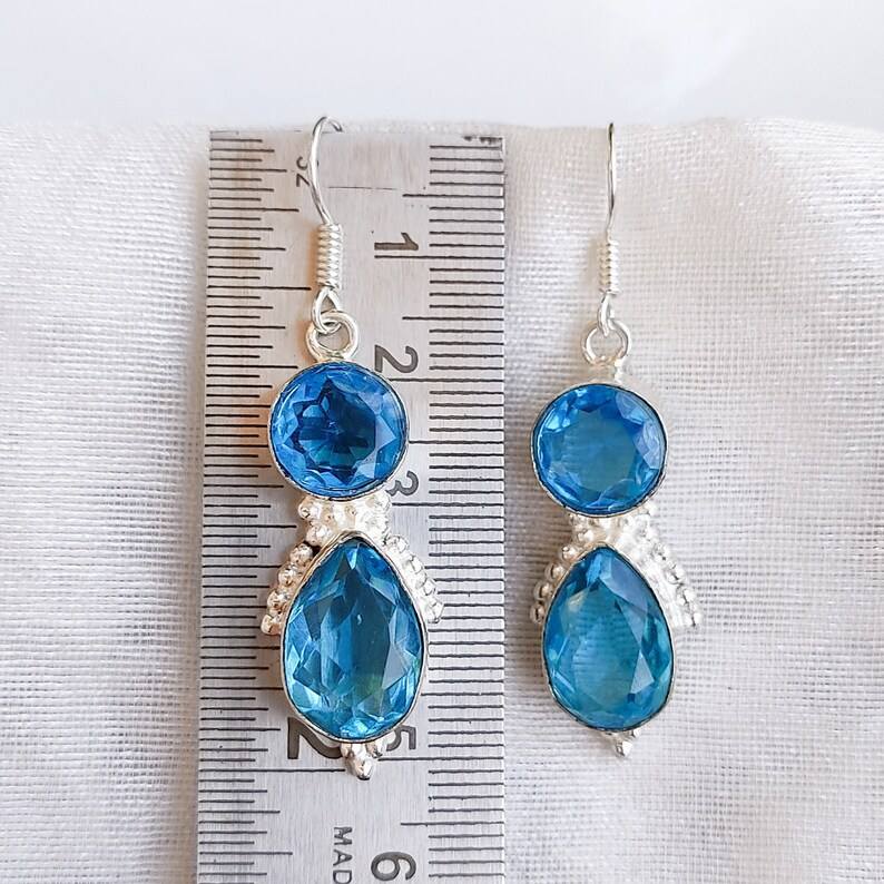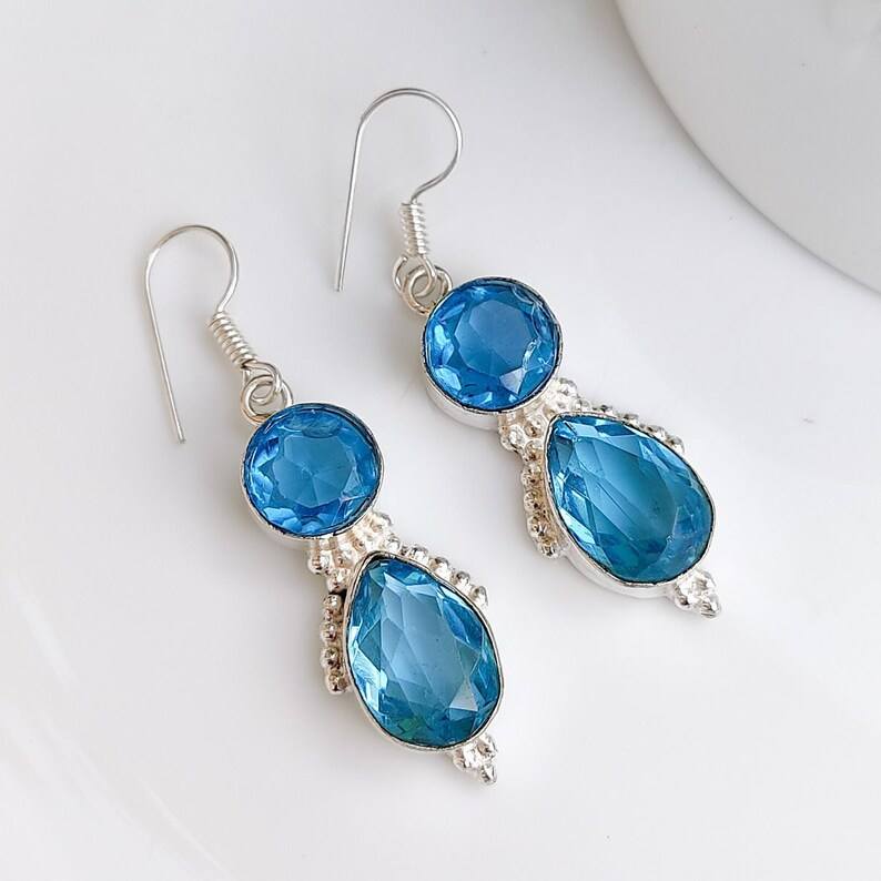 For Blue Topaz Silver Plated Drop Earrings Aqua Blue Crystal Handmade Luxury Wedding Boho Jewelry Gift for Women