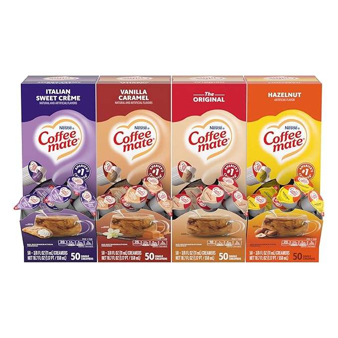 For Coffeemate Creamer Singles Variety Pack 200 Count (50 Bags Per Flavor)-Non-Dairy No Refrigeration Coffee & Milk Tea Use