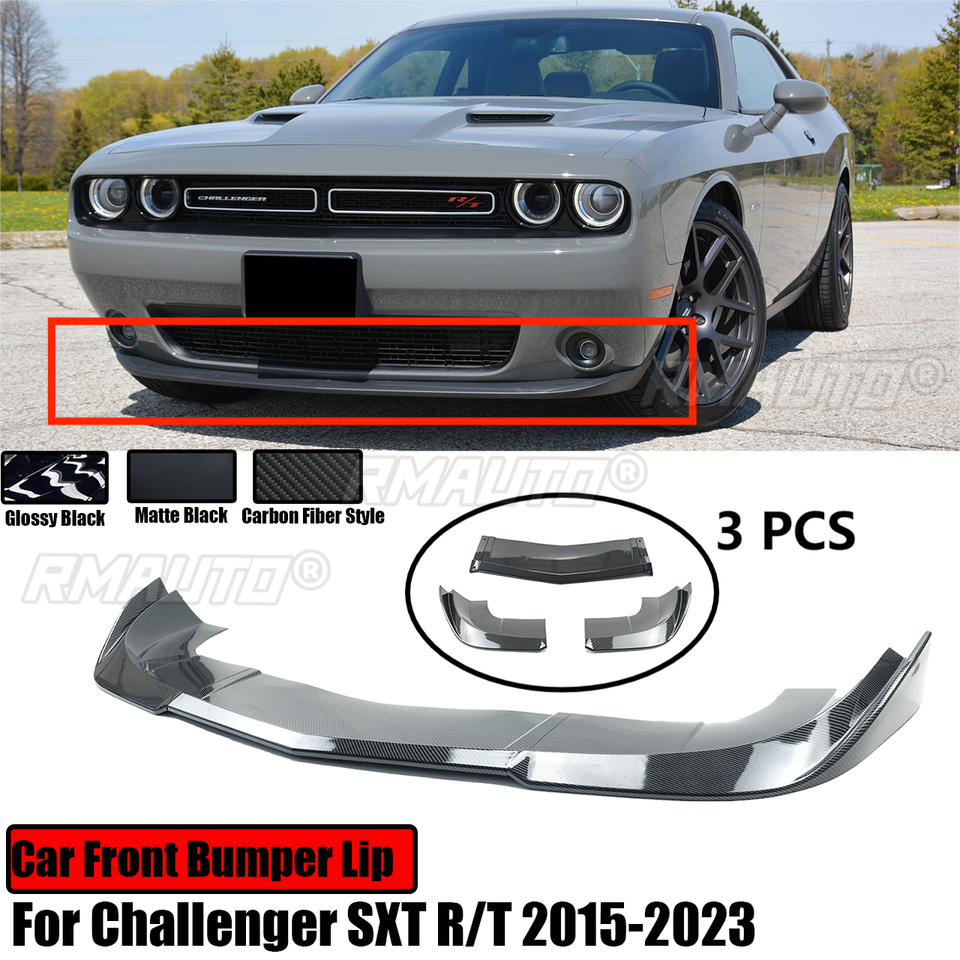 For Dodge Challenger SXT R/T 2015-2023 Car Front Bumper Lip Spoiler Splitter Diffuser Carbon Fiber Look Glossy Black Matte Black