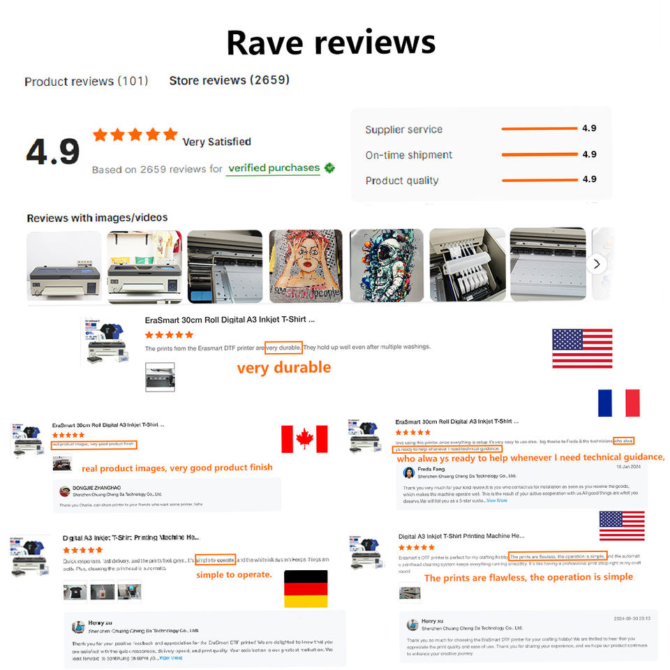 For Erasmart New A3+ Digital DTF Printers Pet Film T Shirt Textile Printing Machine with DX7 Head