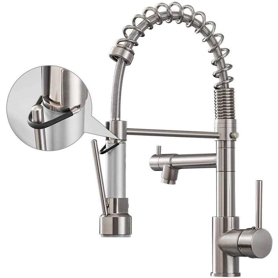 For FLG Modern High Arc Kitchen Sink Faucet LED Light Pull-Down Design Two-Head Taps Zinc Alloy Handle OEM/ODM Option for Home