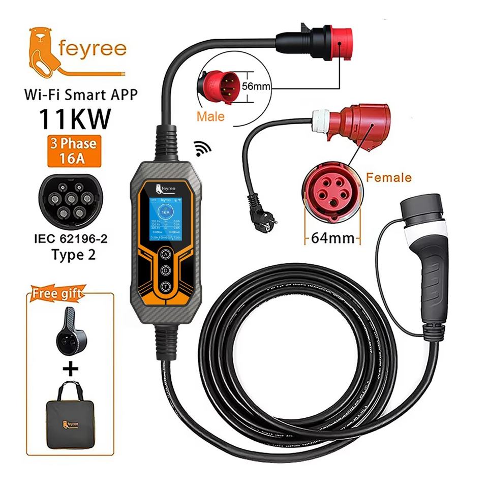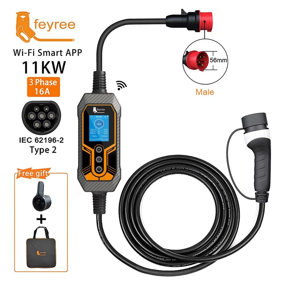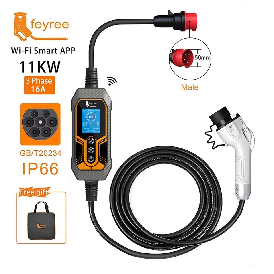 For Feyree 11kw GBT Powered Portable Charging Station Level 3 AC Type 2 EV Chargers WIFI APP Controlled New Condition
