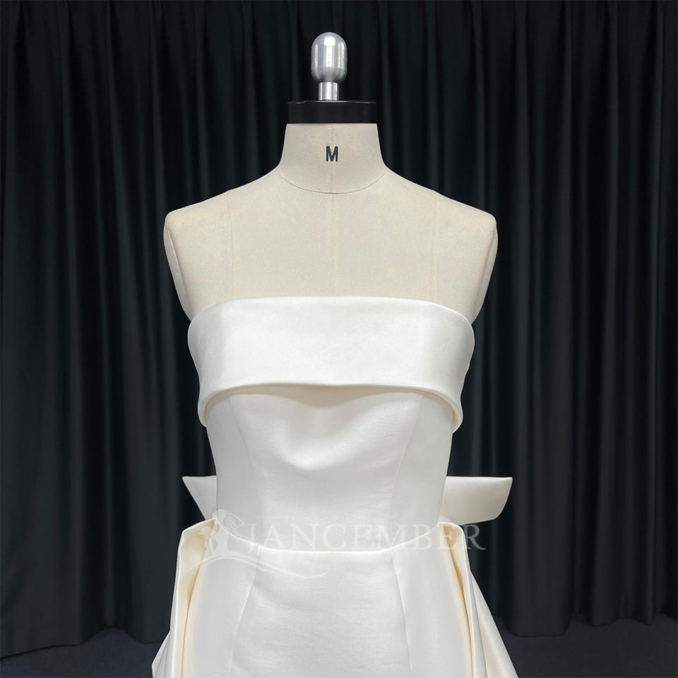 For HX115 Modern Luxury Boat Neck Satin Bow Mermaid Wedding Dress with Chapel Train Lace & Crystal