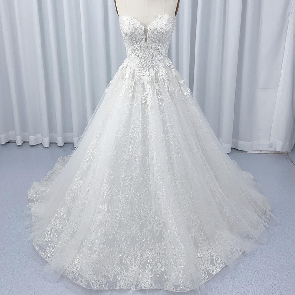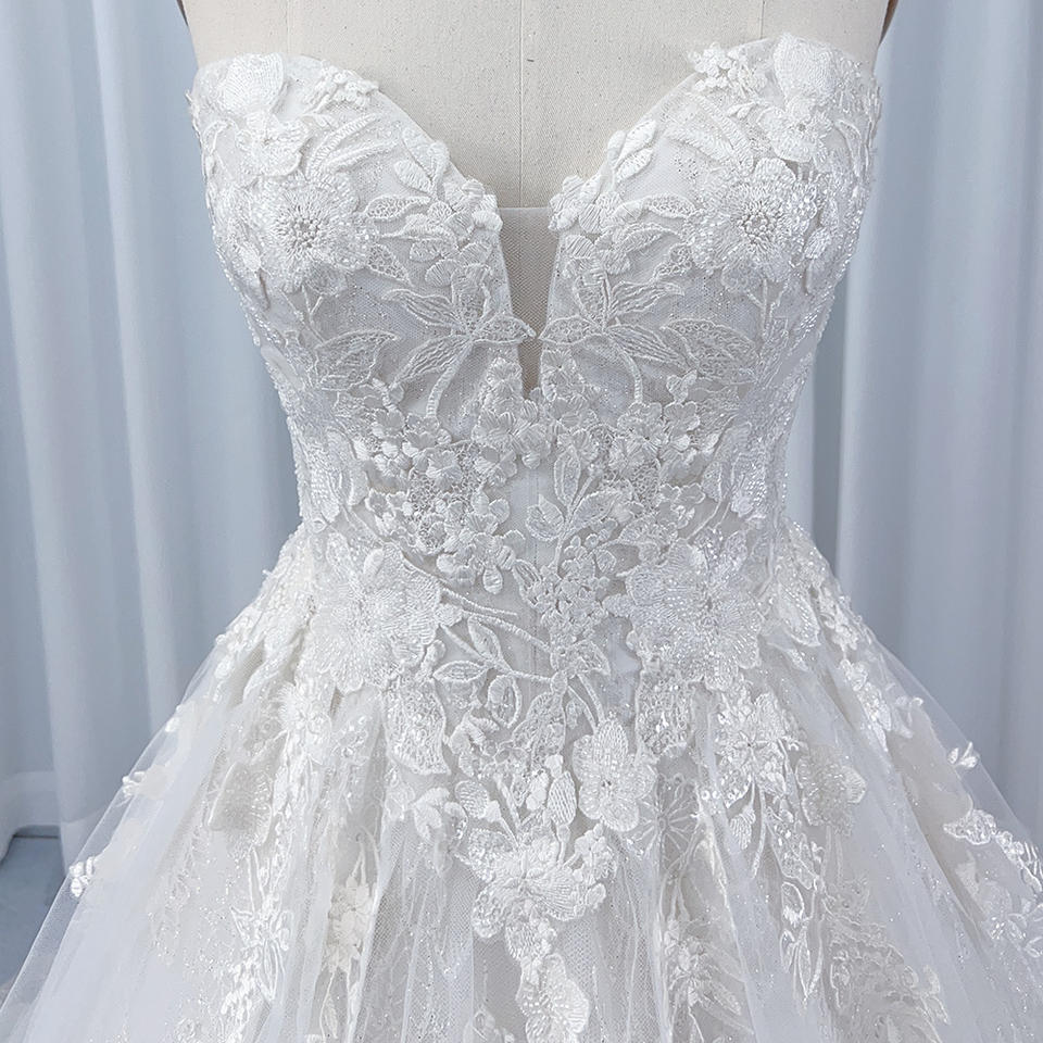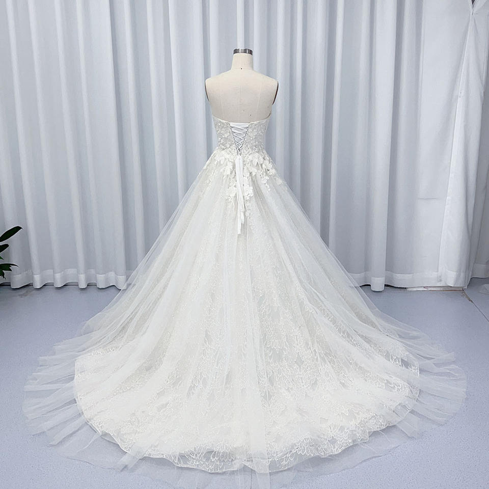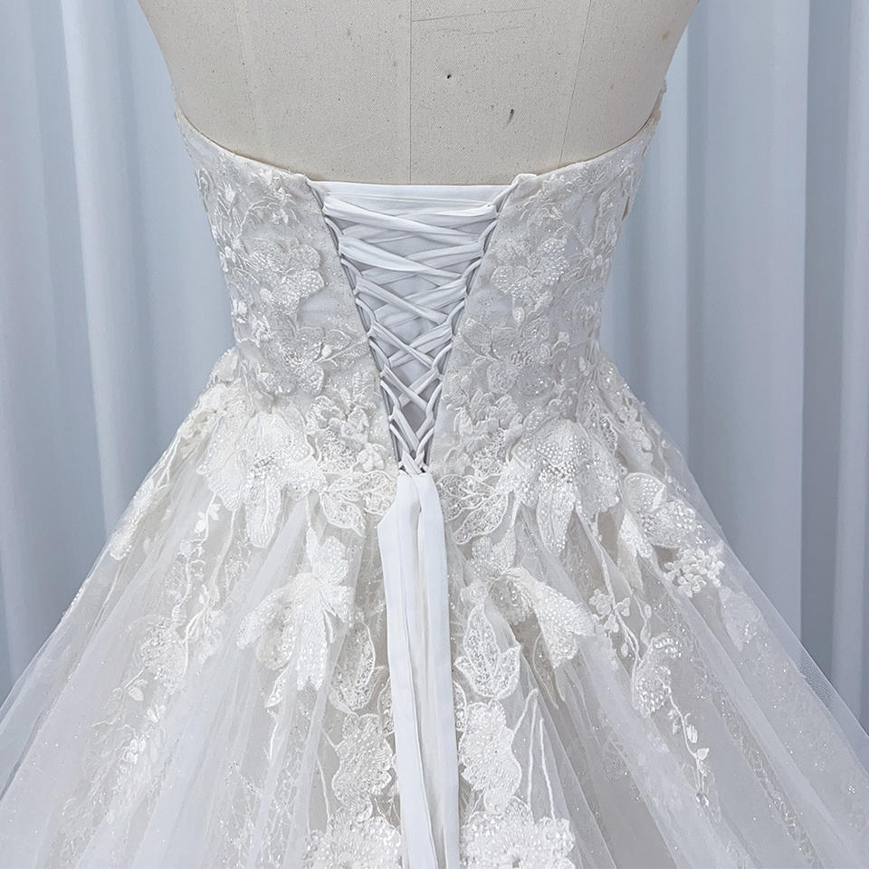 For HX17 Modern Sweetheart Lace-up Floor-Length Wedding Dress with Floral Crystal Appliques and Embroidery for Girls