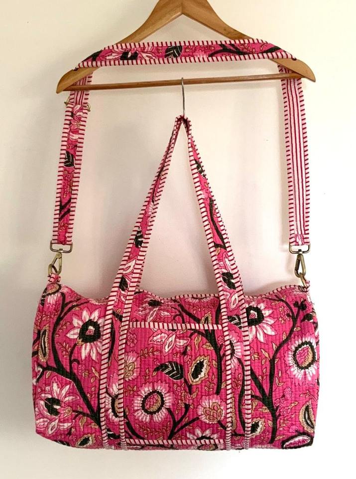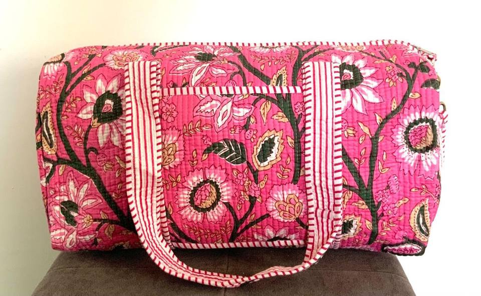 Handmade Cotton Block Print Duffle Bag Eco-Friendly Durable Large Capacity Travel Gym Yoga Weekender Luxury Quilted Design Gift