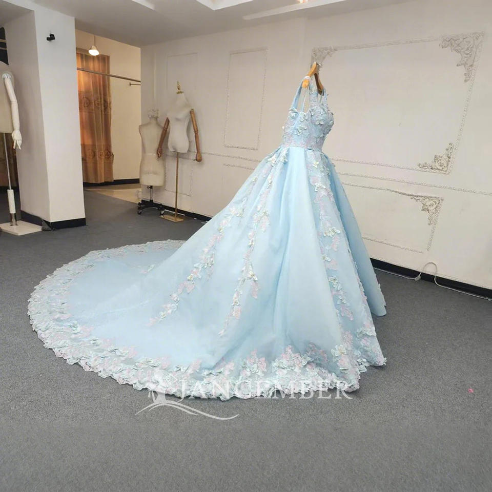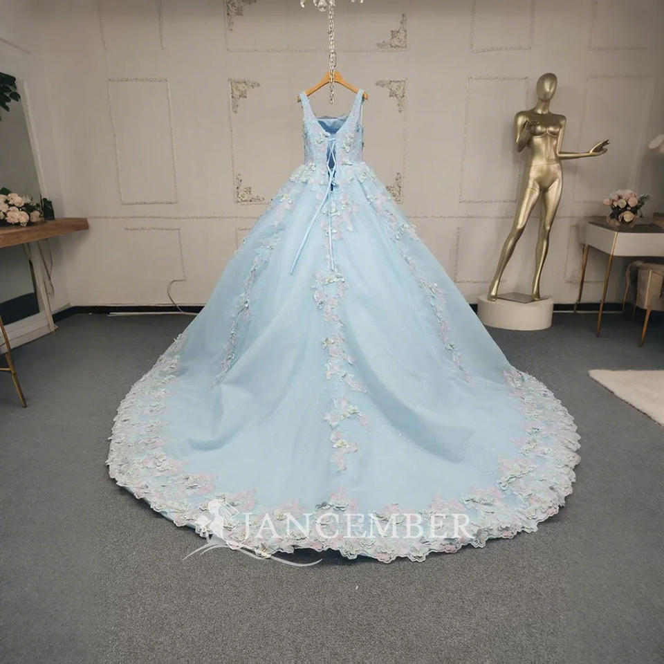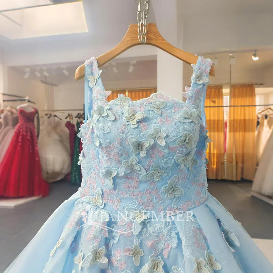 For Jancember ANY49 Sky Blue Butterfly Puffy Ball Gown Beaded Crystal-Decorated Evening Dresses for 16 Girls Natural for Parties