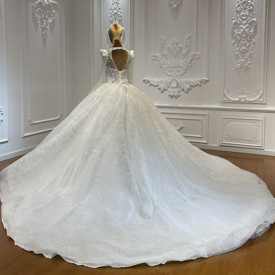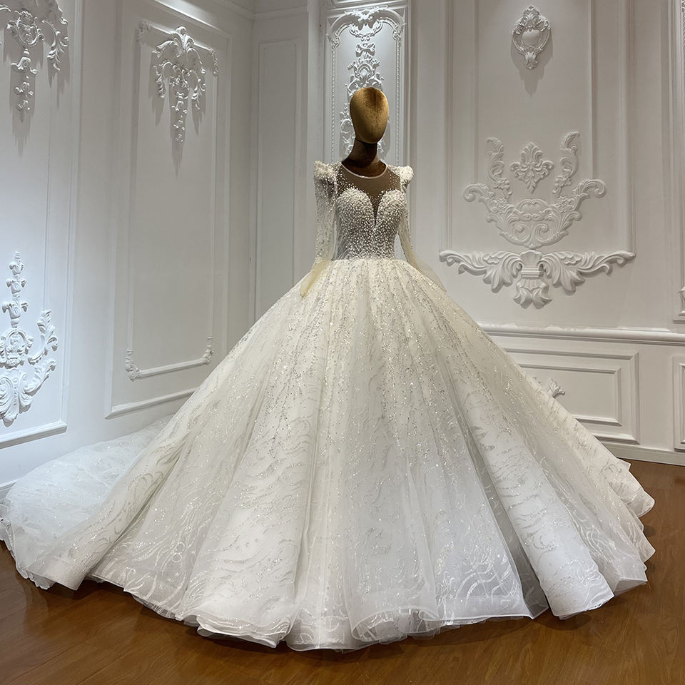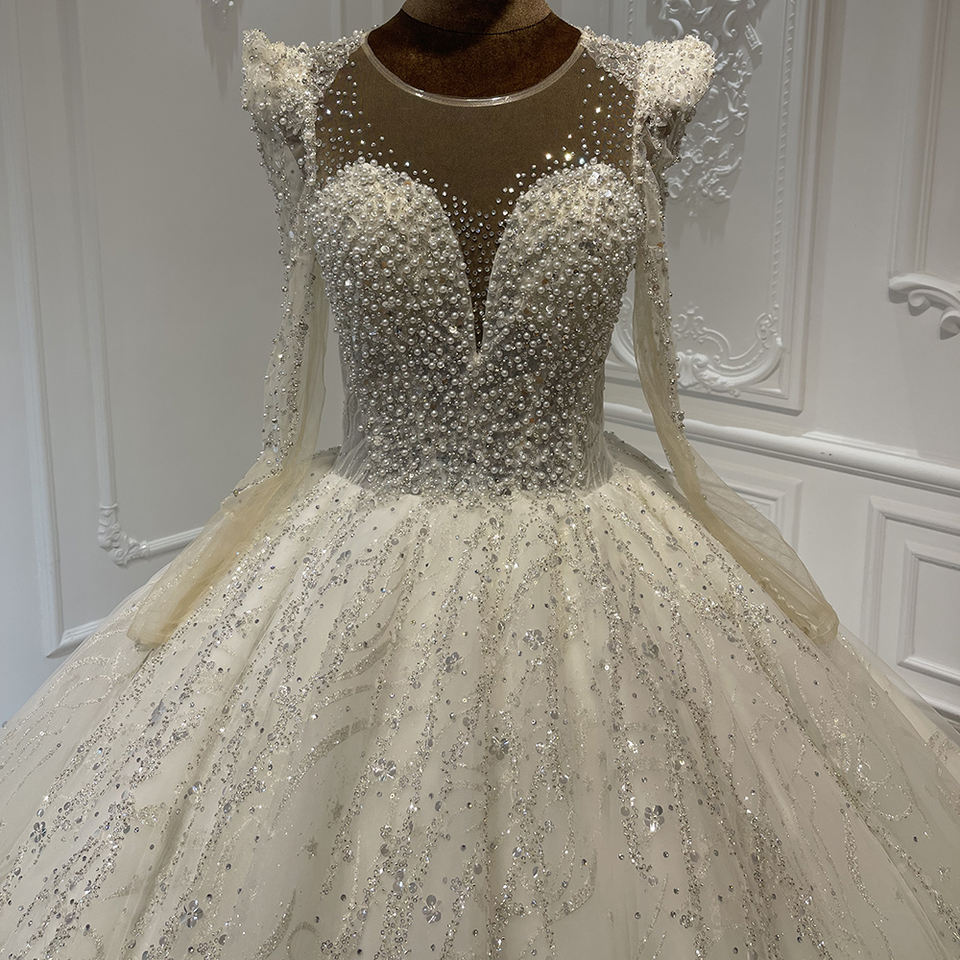 For Jancember LSCJ48 Modern Empire Bridal Ball Gown Wedding Dress Long Sleeve Pearls Lace Crystal Decorations Featuring Chapel T