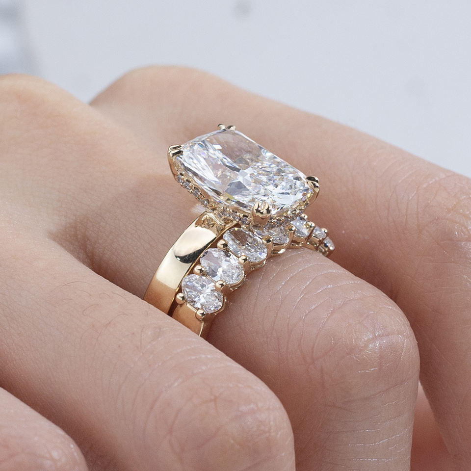 For Jewelry MSR-2051 14K Solid Gold Synthetic Lab Grown Cushion Cut Diamond IGI Certified Luxury Ring Set for Women