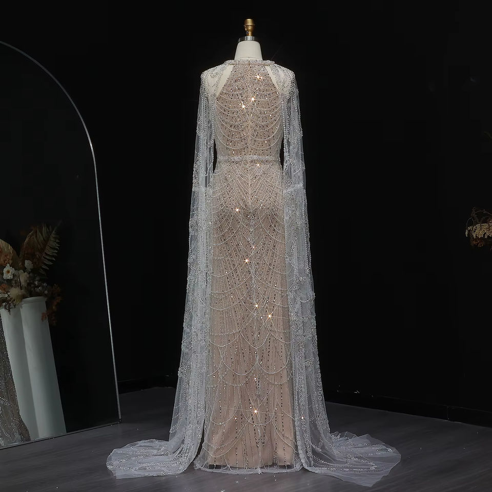 For LSZ089 Stunning Champagne Arabic Sequins 3D Crystal Pleat Floor-Length Mermaid Silhouette Evening Party Prom Dress for