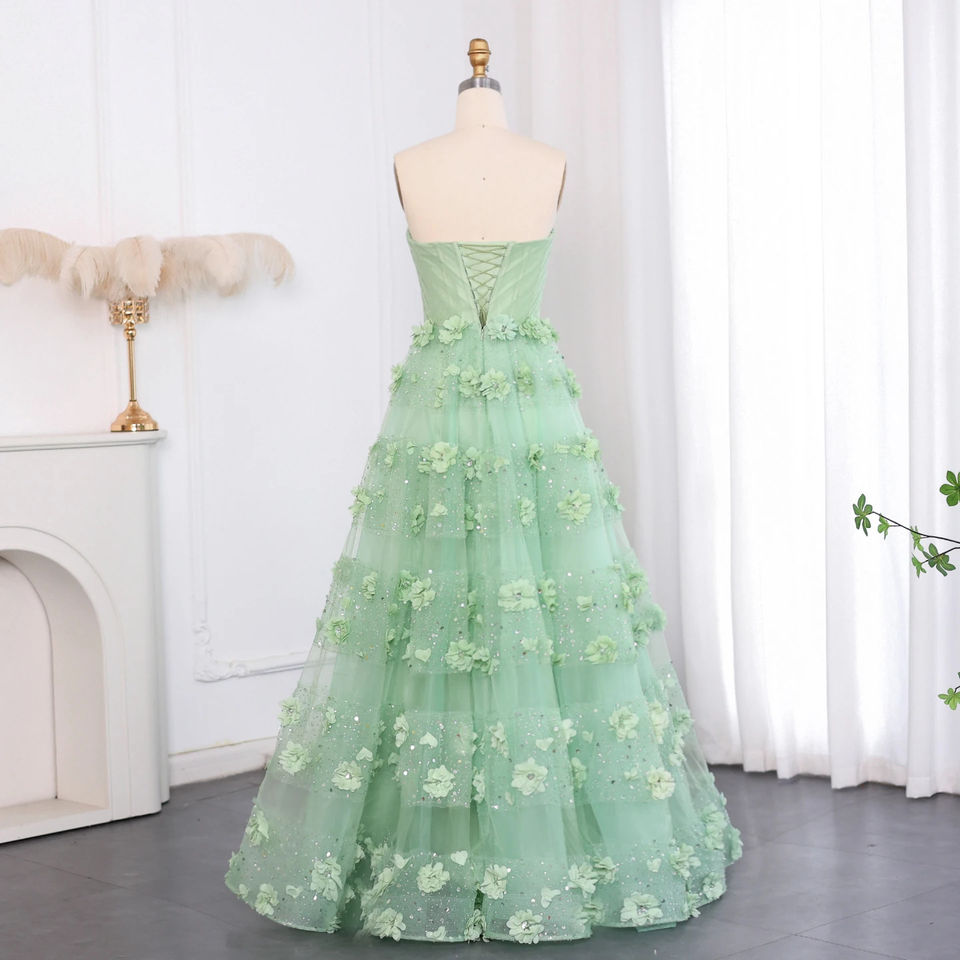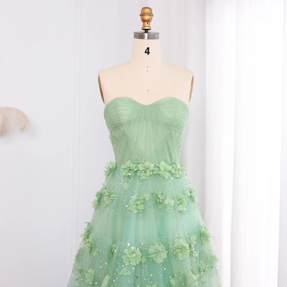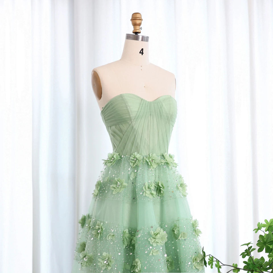 For LSZ346 Elegant Sage Green 3D Flower A-Line Evening Party Dress with Feathers Crystal Pleat Natural Waistline