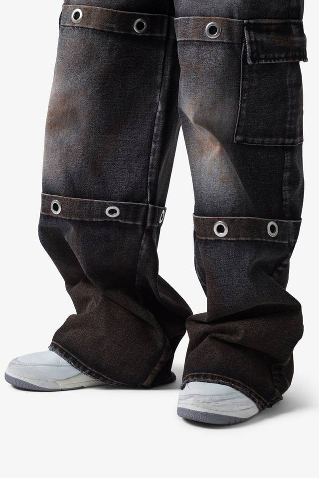 For Leather Jacket Canvas Baggy Loose Relaxed Fit Medium Dark Grey Metal Eyelet Ring Details Multiple Cargo Utility
