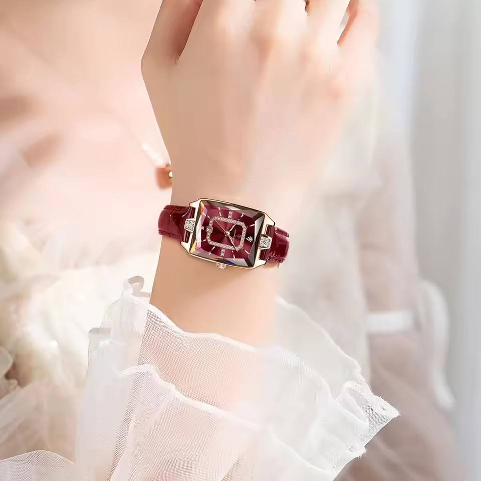 For Luxury Men's Watch Crystal Leather Strap Quartz Waterproof Calendar High Quality Elegant Simple Business Fashion Watch