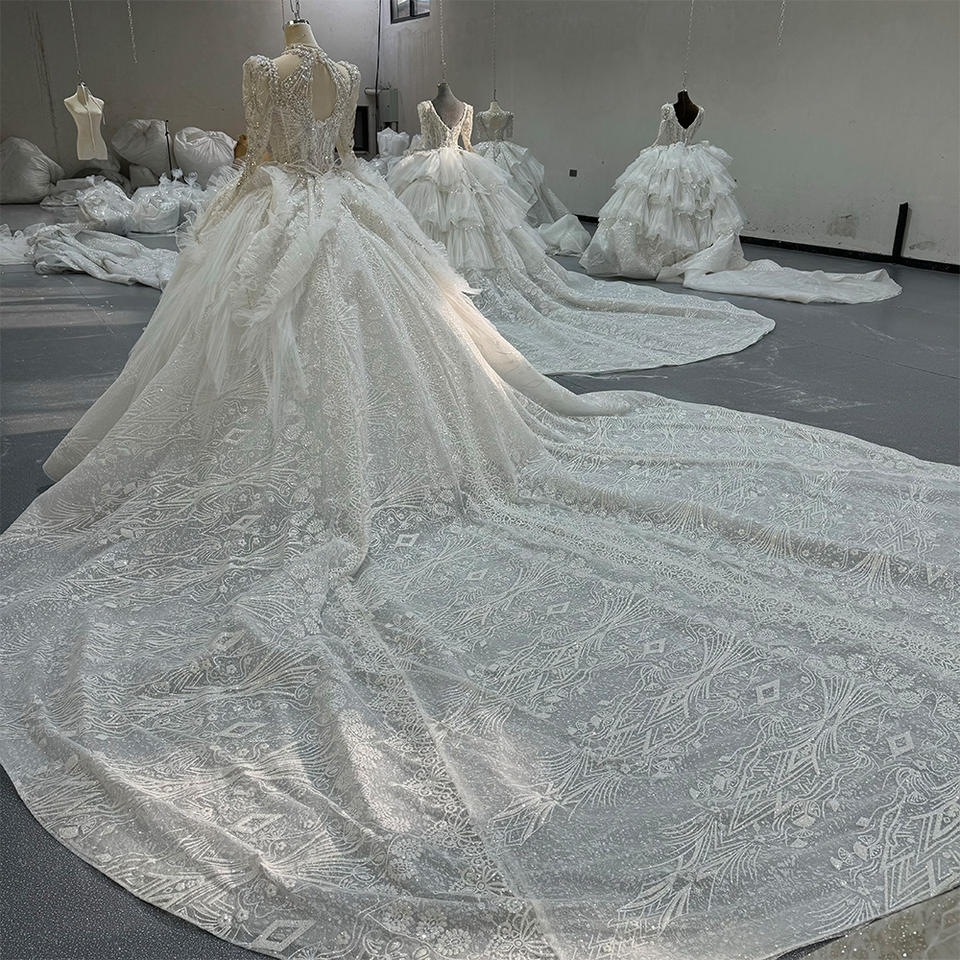 For MN257 Modern Empire Ball Gown Wedding Dress Square Collar Long Skirt Lace Appliques Chapel Train Lace Crystal Flower