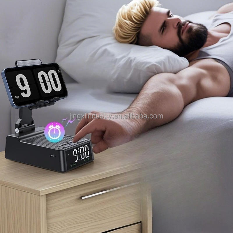 Mini Alarm Clock for Speaker Phone Stand 3-in-1 LED Desk Clock Radio with Battery for Men Women Students Birthday