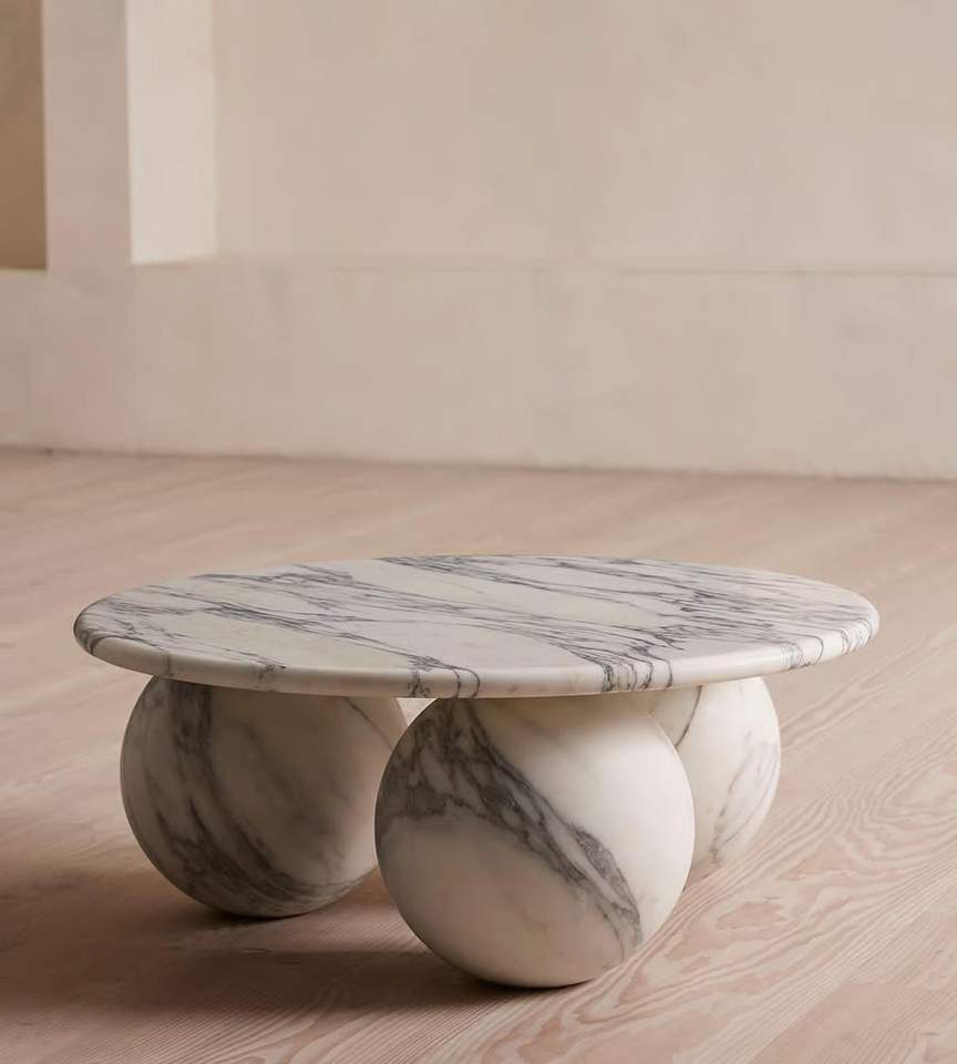 For Newstar Modern Round Marble Coffee Table with Sphere Ball Base Natural Marble Center Table for Living Room Furniture Set