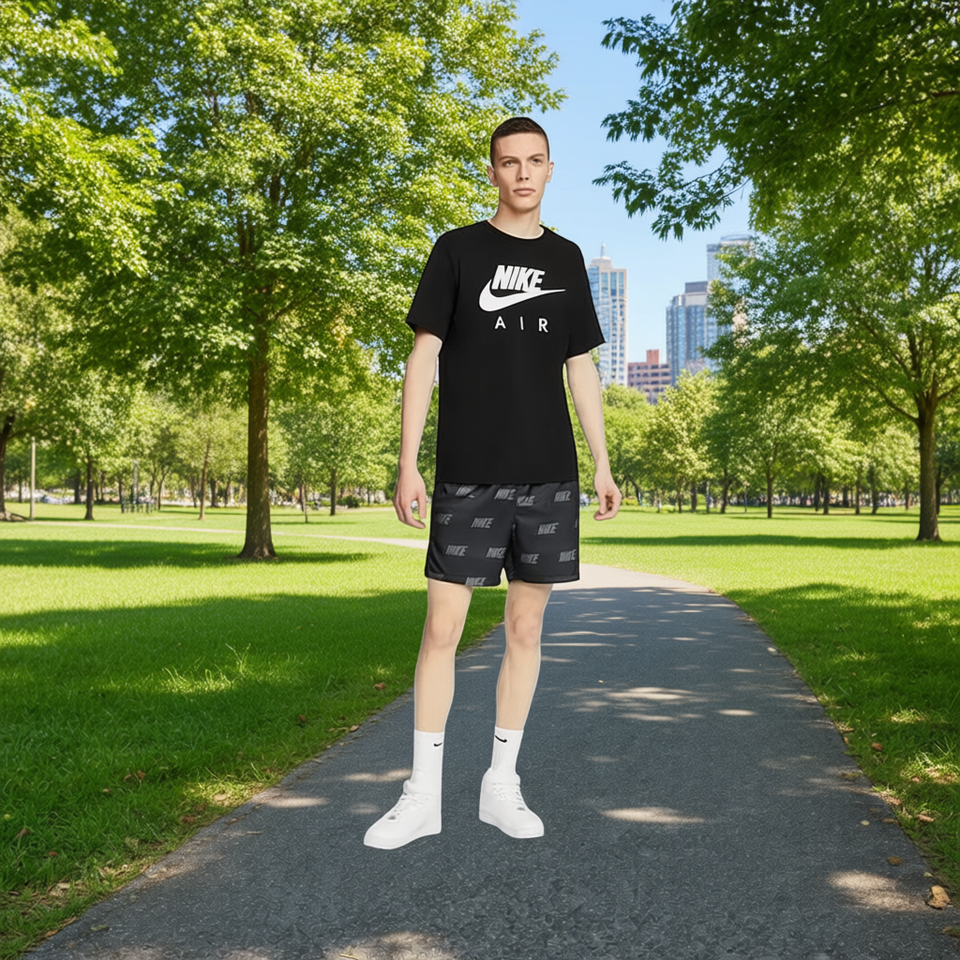Nike Men's Active Woven Shorts Black Grey Allover Print Sportswear Casual Loose Fit Knee-Length With Pockets Authentic Brand New