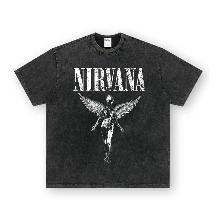 For Nirvana Cross-Border Heavyweight American Retro Printed T-Shirts for Men 100% Cotton Loose Five-Quarter Sleeve Short-Sleeved