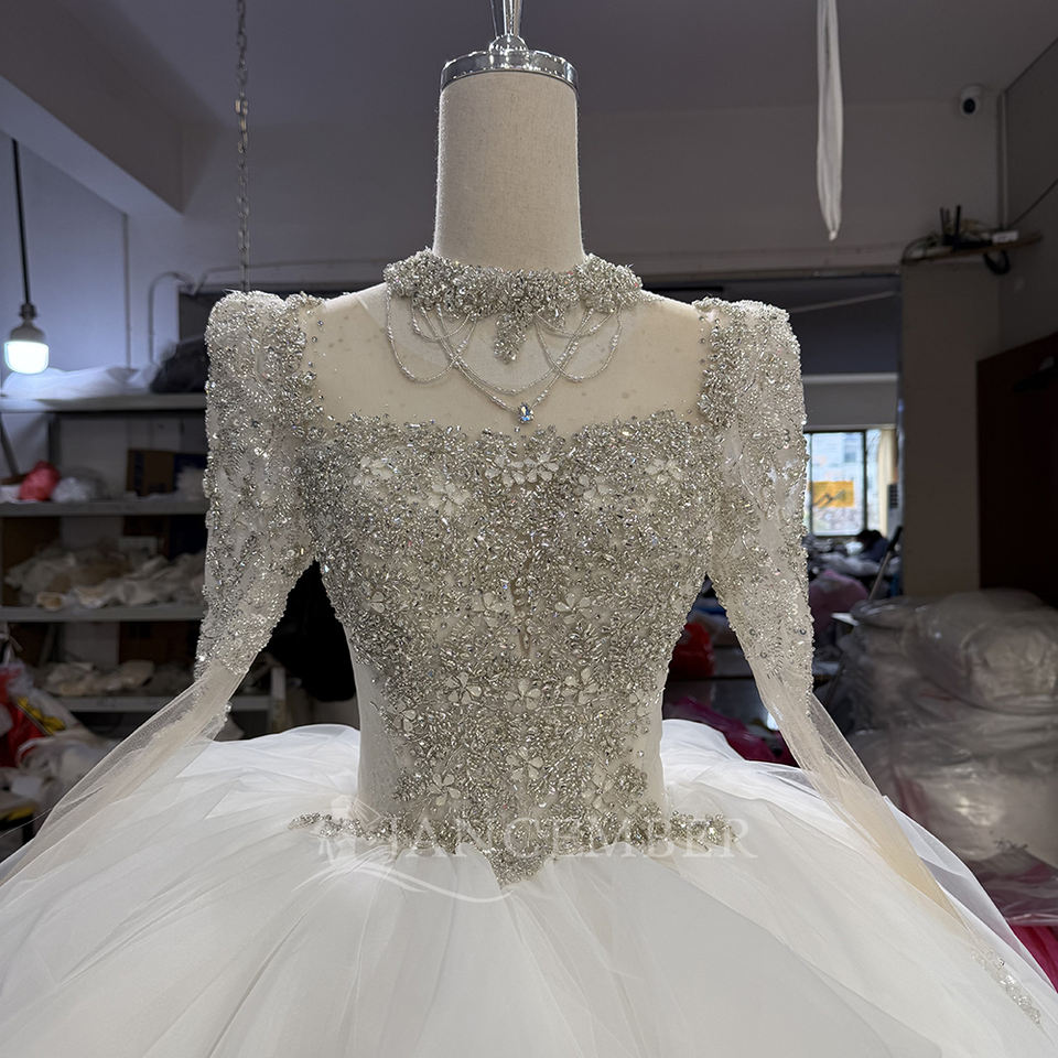 For OY043 Beautiful Crystal Lace Appliques Square Collar Wedding Tulle Fabric Ball Gown with Chapel Train 100% Polyester