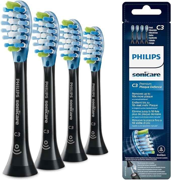 For Philips for Sonicare HX9044/33 Premium Plaque Defence Replacement Brush Heads 4pk Black-Sync Enabled Soft for Household Use