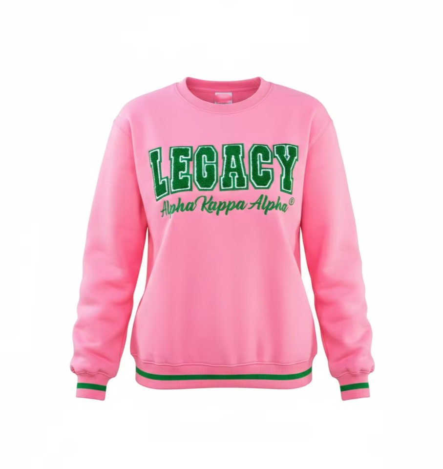 For Pink Green Sorority for Crewneck Sweatshirt Cozy Greek Fleece Pullover Winter Style 3D Embroidery Front