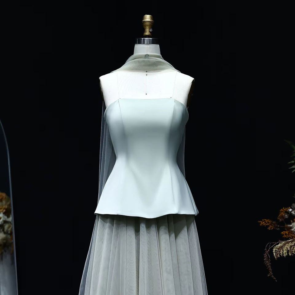 For SF130 Strapless 3D Crystal Feather Floor-Length A-Line Evening Dresses Scarf Gary Green Dubai for Women Wedding Party