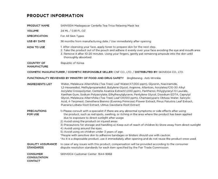 ingredient:Water, Melaleuca Alternifolia (Tea Tree) Leaf Water, Glycerin, Niacinamide