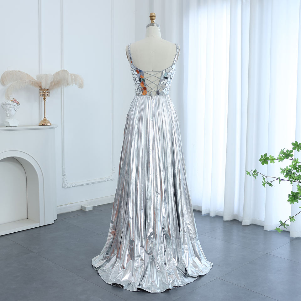 For SZ064 Sequined Appliques 3D Anti-Static Natural Beach Sleeveless Lace-up Formal Evening Gowns Dresses for Women