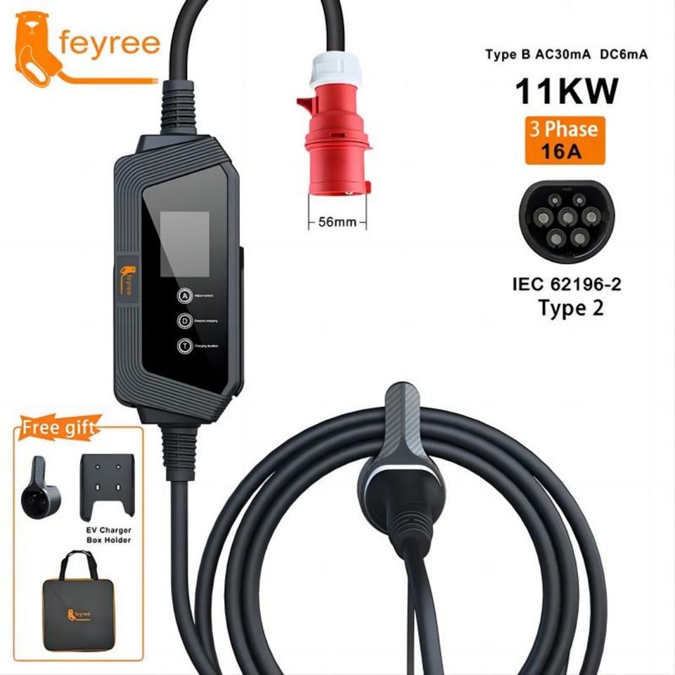 For Smart Portable EV Charger Type2 Cable 32A 7KW Fast Charging Electric Car Adjusting Current Setting 5M 24-Month Warranty