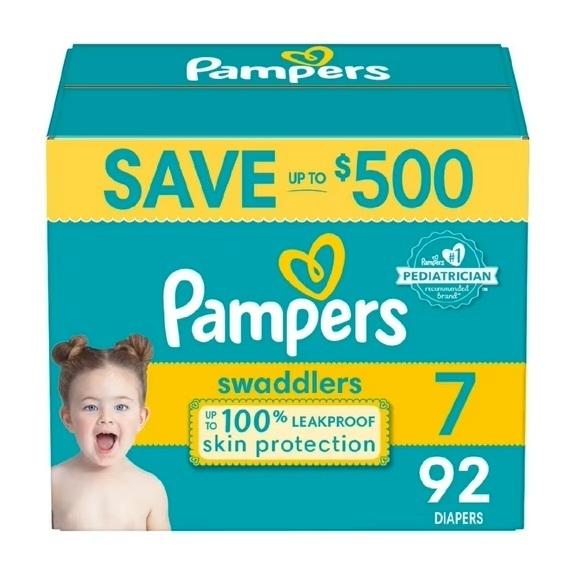 For Swaddlers Softest Ever Cotton Diapers Size 7 (35 Lbs) Double-Deck Anti-Side Leakage 92 Count