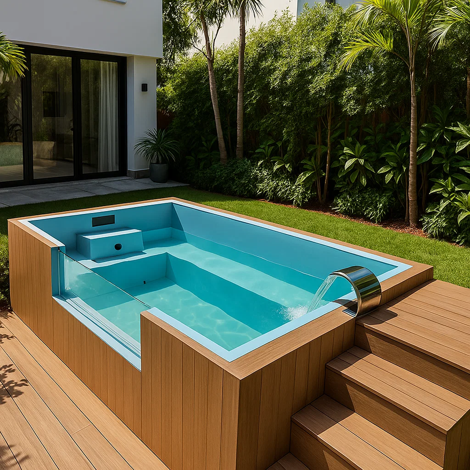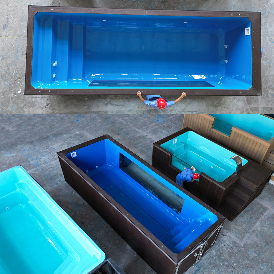 For Swim Spa Large Outdoor Square Shape Acrylic Window Ground Swimming Plunge Pool Fiberglass Container Wood Accessories