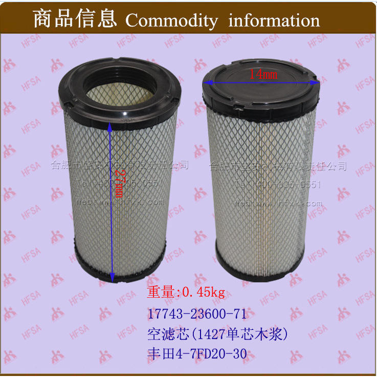 For Toyota 4-7FD20-30 Forklift Air Filter Element K1427 Cotton Pulp & Wood Pulp for Use with Forklifts