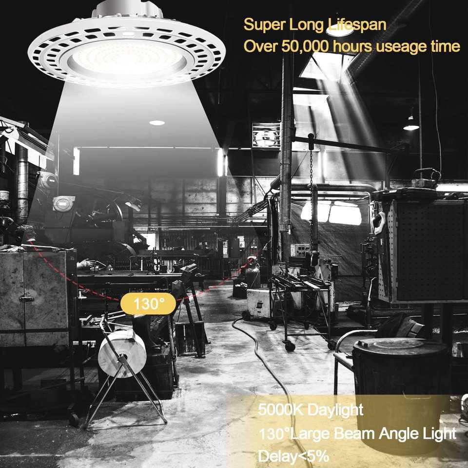 For UL DLC Certified 200W UFO for LED High Bay Light 5000K 1-10V Dimmable AC100-277V with 5' Hook Cable for Warehouse Lighting
